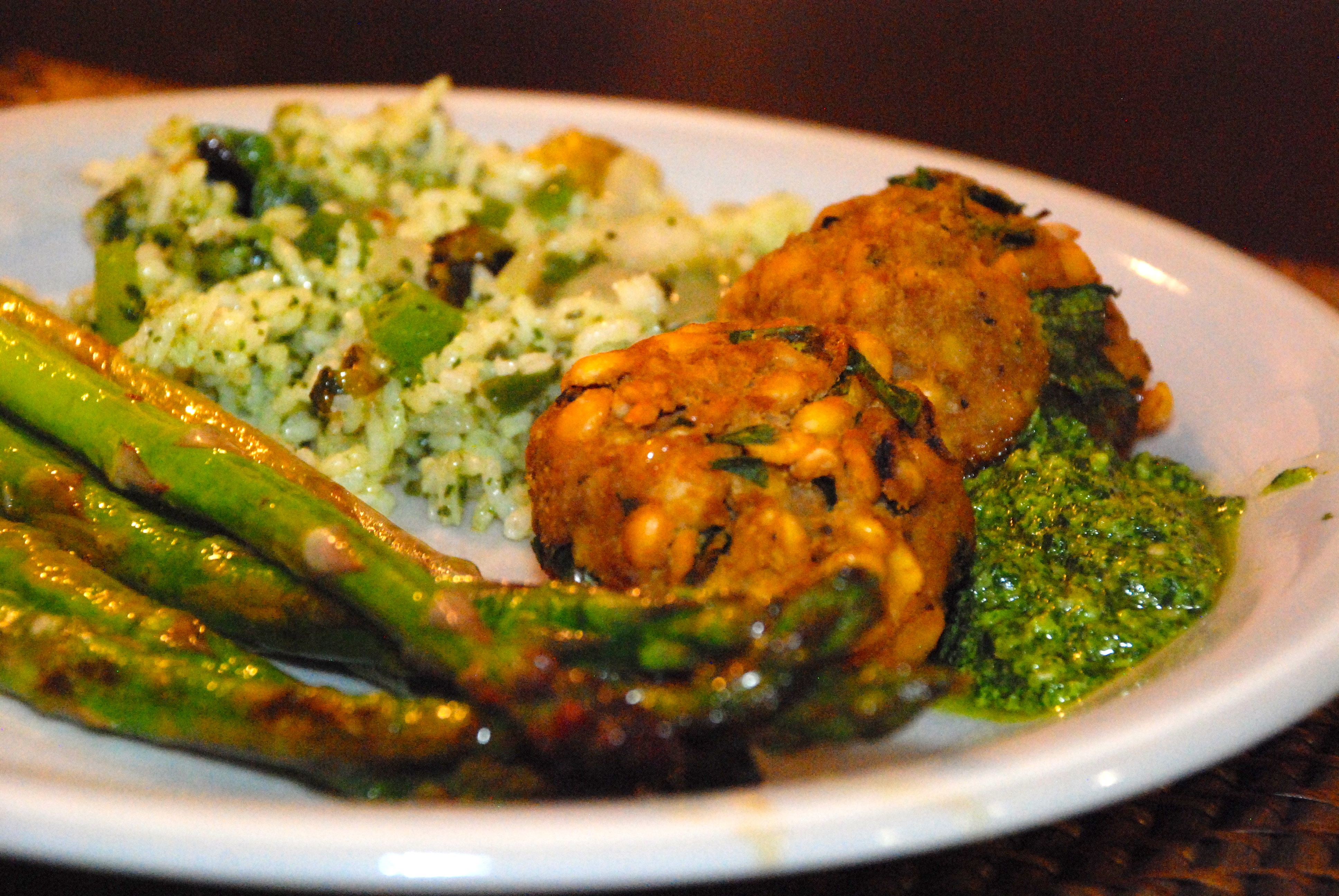 The pesto also serves as a dipping sauce for the meatballs. Jean-Francois topped his rice with the lemon-butter sauce.